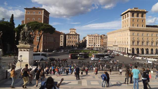Se parti dal Colosseo prendi l’autobus a via Claudia. L’81 costeggia il Palatino alla tua destra, il Circo Massimo a sinistra, il Teatro Marcello a sinistra, Piazza Venezia e Palazzo Venezia, Piazza del Gesù con l’omonima chiesa a sinistra, Largo di Torre Argentina con i suoi templi romani a sinistra.